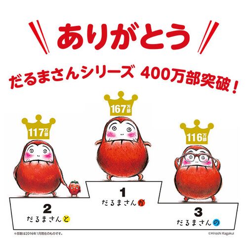 ★キャンペーン情報★ 「だるまさん」シリーズ・トリプルミリオンフェア、開催中! 『だるまさんが』に続いて、『だるまさんの』『だるまさんと』もそろって100万部を突破。 累計で400万部をこえる大人気シリーズになりました。 ありがとうの気もちをこめて、…